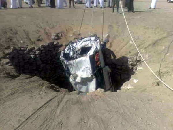 Re: Only in KSA. Car flies into water well. See photos.