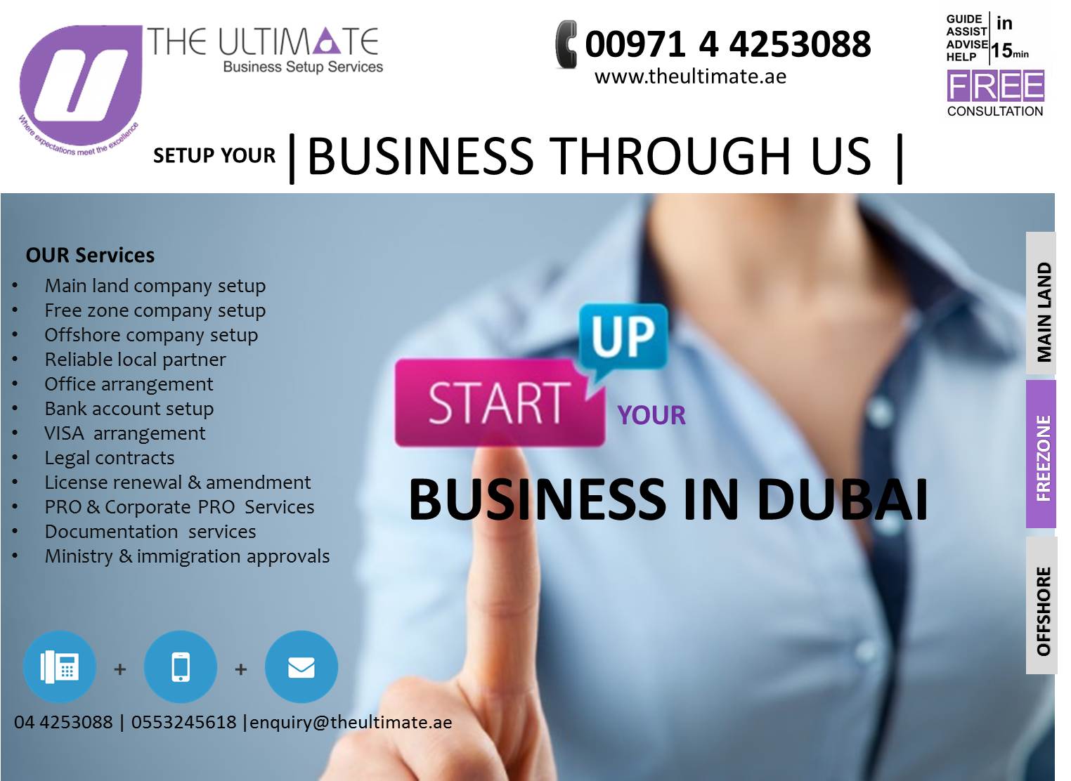 0097144253088 or enquiry@theultimate.ae